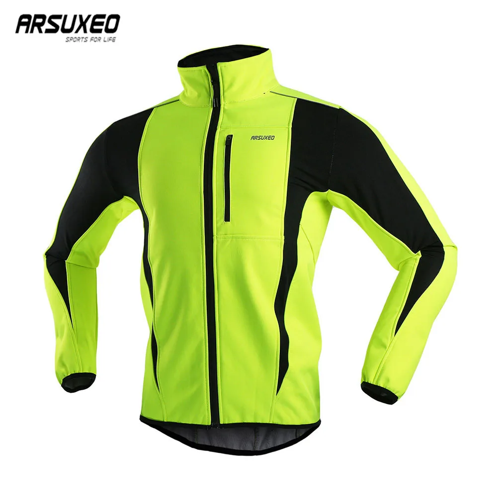 ARSUXEO Men Winter Cycling Jacket Windproof Waterproof Thermal Fleece Bike Jacket Warm Bicycle Clot