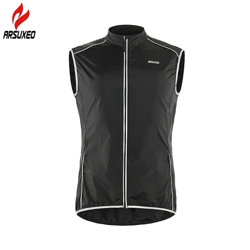 Best Quality ARSUXEO Reflective Men Cycling Vest Windstopper Windproof Bike Bicycle Running Vest with Back Zippe
