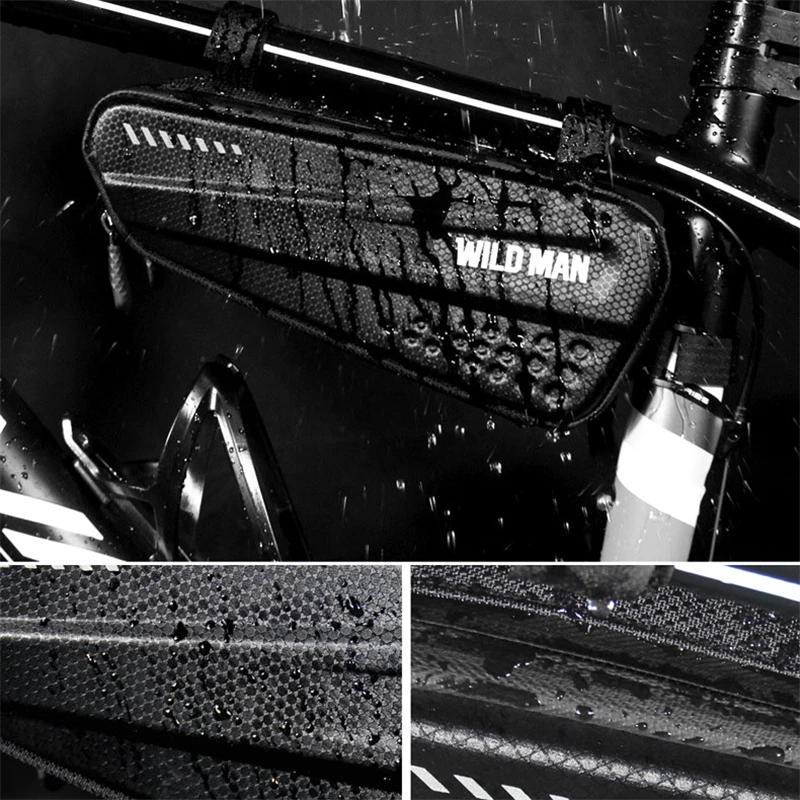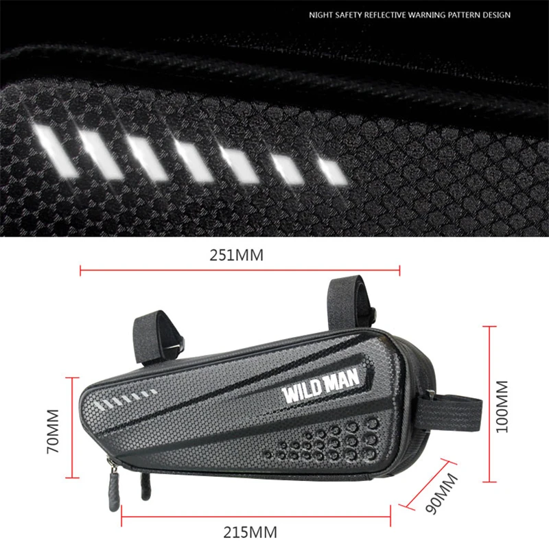 WILD MAN Bicycle Bag Front Tube Frame Bag Hard Shell Rainproof Bike Bag Double Zipper Triangle Tool